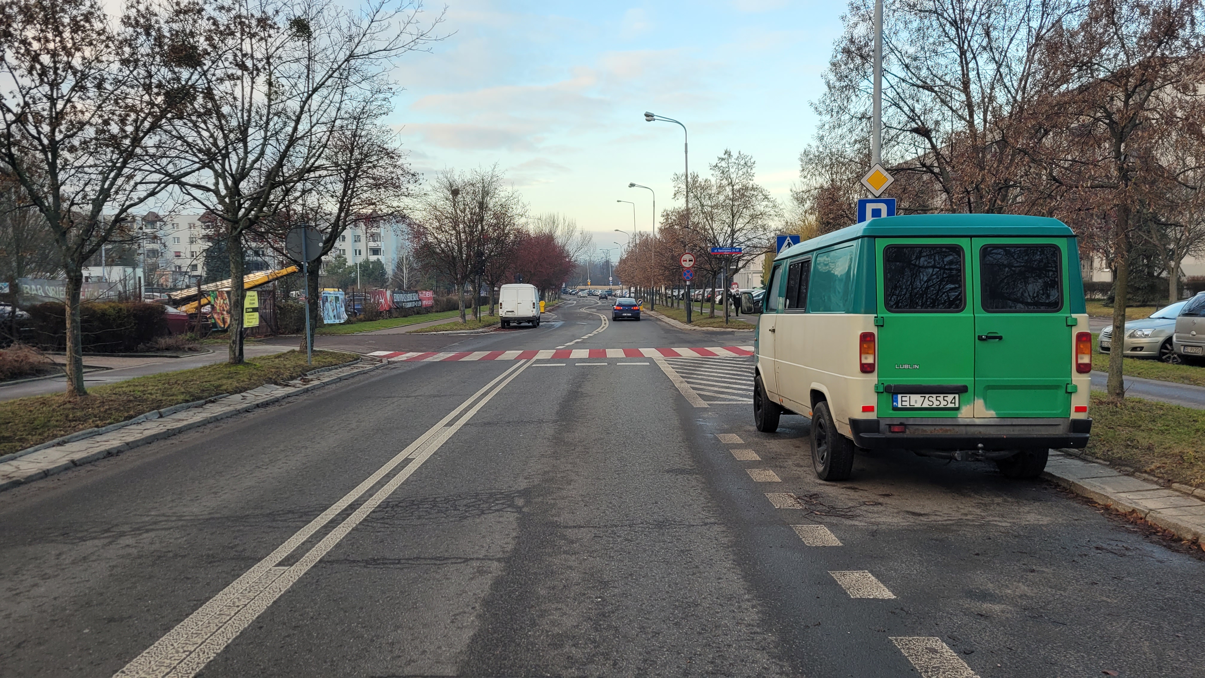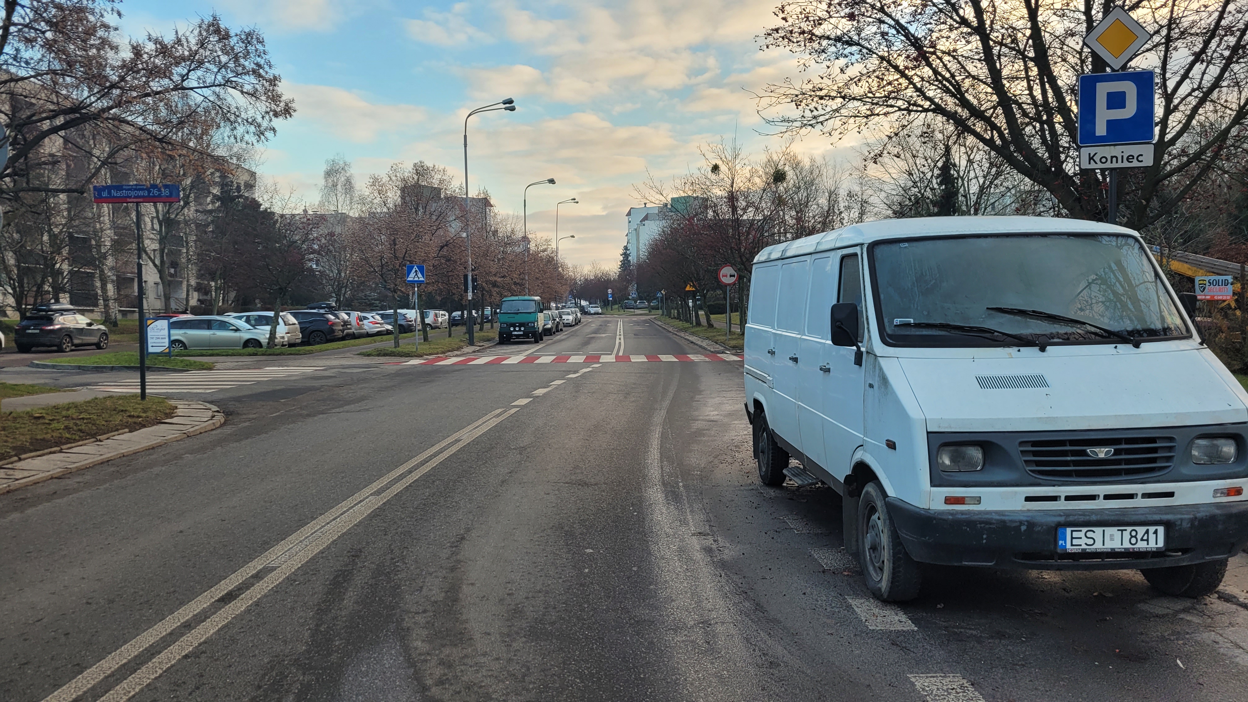 • Jadąc w stronę północną, kierowca ma ograniczoną widoczność prawej strony przejścia przez parkujące samochody, zwłaszcza, gdy porusza się z prędkością większą, niż dopuszczalne w tym miejscu 30km/h.