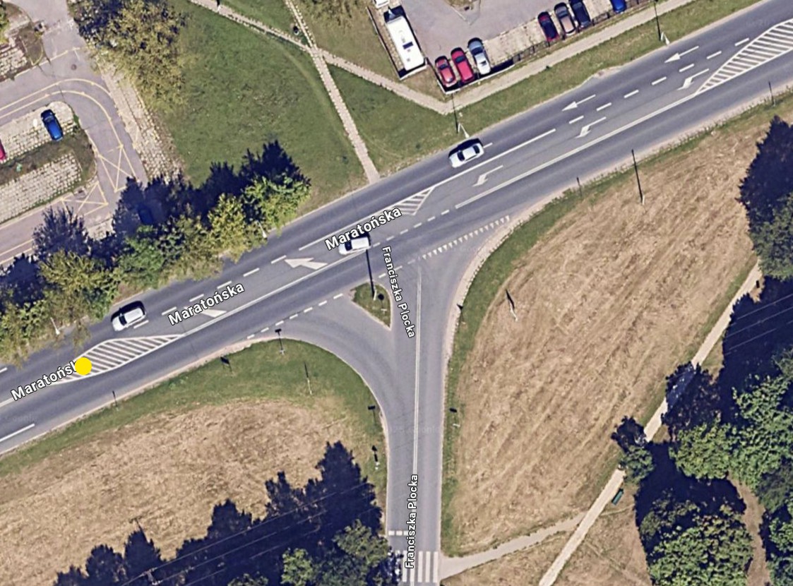 Azyl uliczny / separator pasów na ul Maratońskiej przy Plocka