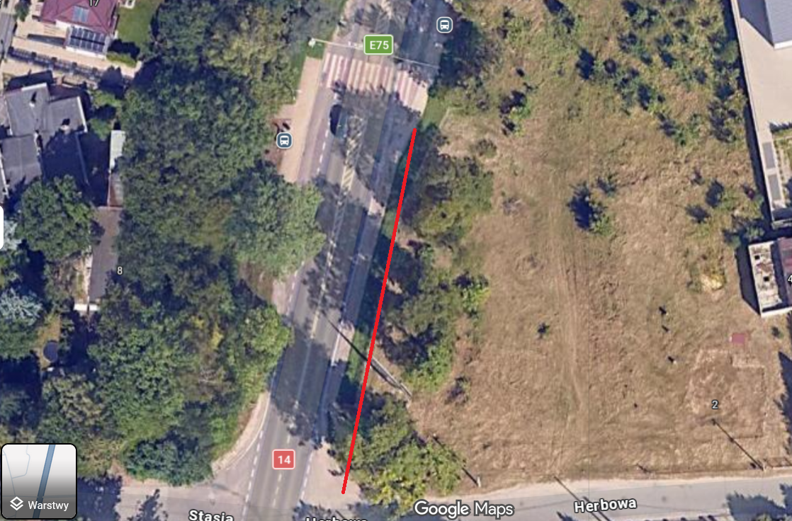Chodnik wzdłuż ulicy Strykowskiej, na odcinku od ul. Herbowej do przejścia dla pieszych (50m od ul. Herbowej)